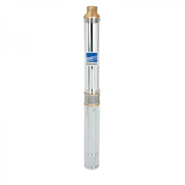 Motobomba centrifuga submersa multiestágios, diâmetro máximo 97mm, com bocal de saída de 1.1/2” BSP, acoplada com motor elétrico assíncrono lubrificado a óleo de grau alimentício ou água, 60Hz, 2 pólos, rebobinável. Os bombeadores TSML Thebe foram projetados para serem acoplados a motores construídos com padrão de acoplamento NEMA. Disponíveis nos modelos de motores: OM4A, 4WP e M4P2 (rebobinável em aço carbono ou aço inox).