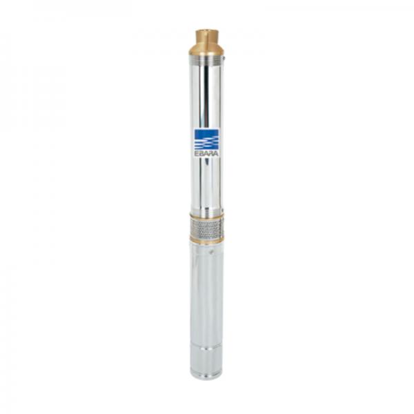 Motobomba centrifuga submersa multiestágios, diâmetro máximo 97mm, com bocal de saída de 2” BSP, acoplada com motor elétrico assíncrono lubrificado a óleo de grau alimentício ou água, 60Hz, 2 pólos, rebobinável. Os bombeadores 4BPL Ebara foram projetados para serem acoplados a motores construídos com padrão de acoplamento NEMA. Disponíveis nos modelos de motores: OM4A, 4WP e M4P2 (rebobinável em aço carbono ou aço inox).